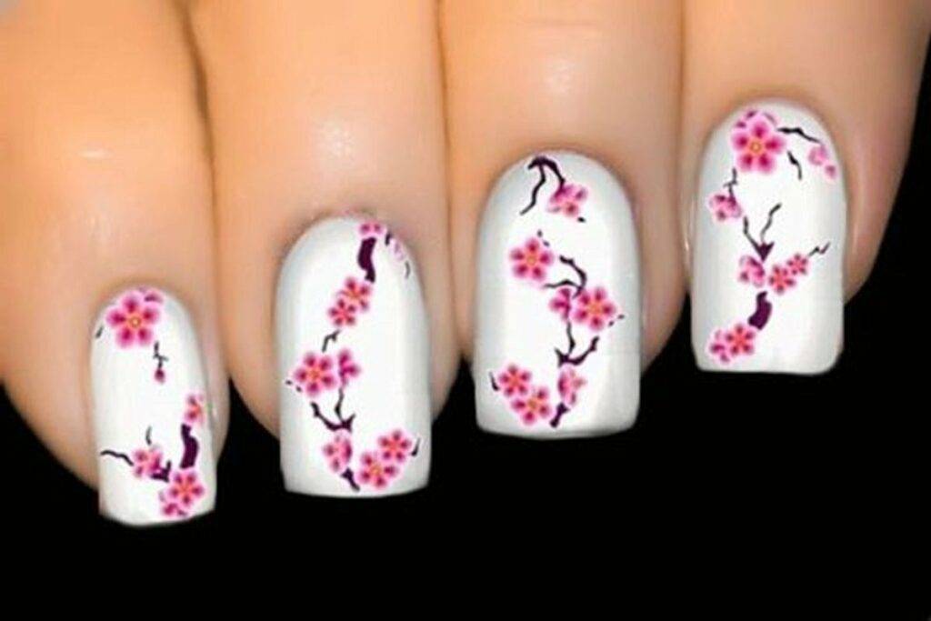 Цветы дотсом на ногтяхЦветы дотсом на ногтях. Процесс рисования цветов очень прост. Сперва нужно подготовить ноготь к работе. После нанесения и высыхания базового цвета, можно приступать к работе с цветами. Для создания цветов нужно инструментом, на небольшом расстоянии друг от друга поставить несколько точек. После их высыхания, в середине будущего цветка, ставится точка. Количество цветов зависит от длинны ногтя. В конце, покрыть укрепляющим лаком.