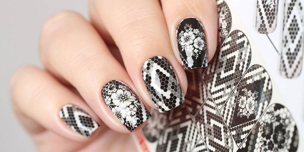 Если времени нет рисовать ногти, а очень хочется удивить других необычным дизайном, можно воспользоваться более простым решением. В продаже имеется специальной набор для создания рисунков. Состоит он из одной или нескольких пластин, на которых нанесены мелкие детали в виде отдельных цветов, фигурок, животных и так далее. Есть и более усовершенствованные рисунки в виде кружев, шаблона французского маникюра, текстур тканей.