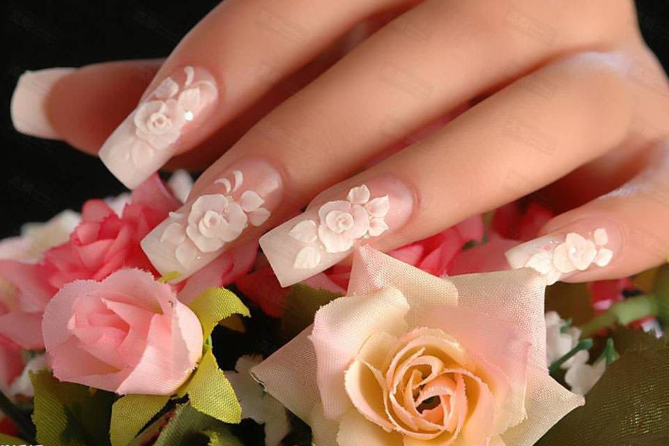 Также акрилом можно сделать френч и оформить его оригинальным флористическим рисунком. Техника росписи акрилом удобна тем, что если узор не получился, то его можно просто смыть водой, пока он не засох и начать роспись сначала.
