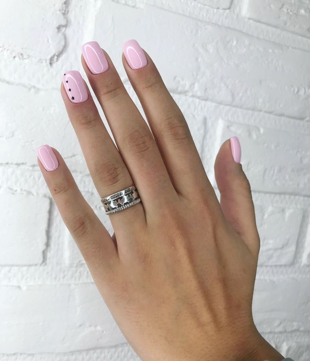 В 2021-2022 годах такой дизайн лучше всего смотрится на миндальной форме, а также с мягким коротким квадратом. Точки могут быть как большие, похожие на горошек, так и совсем маленькие, напоминающие брызги кистью. Серебряный, белый и другие светлые цвета помогут создать более “конфетный” эффект, в то время как темные точки, наоборот, сделают розовые ногти более сдержанными и дерзкими.