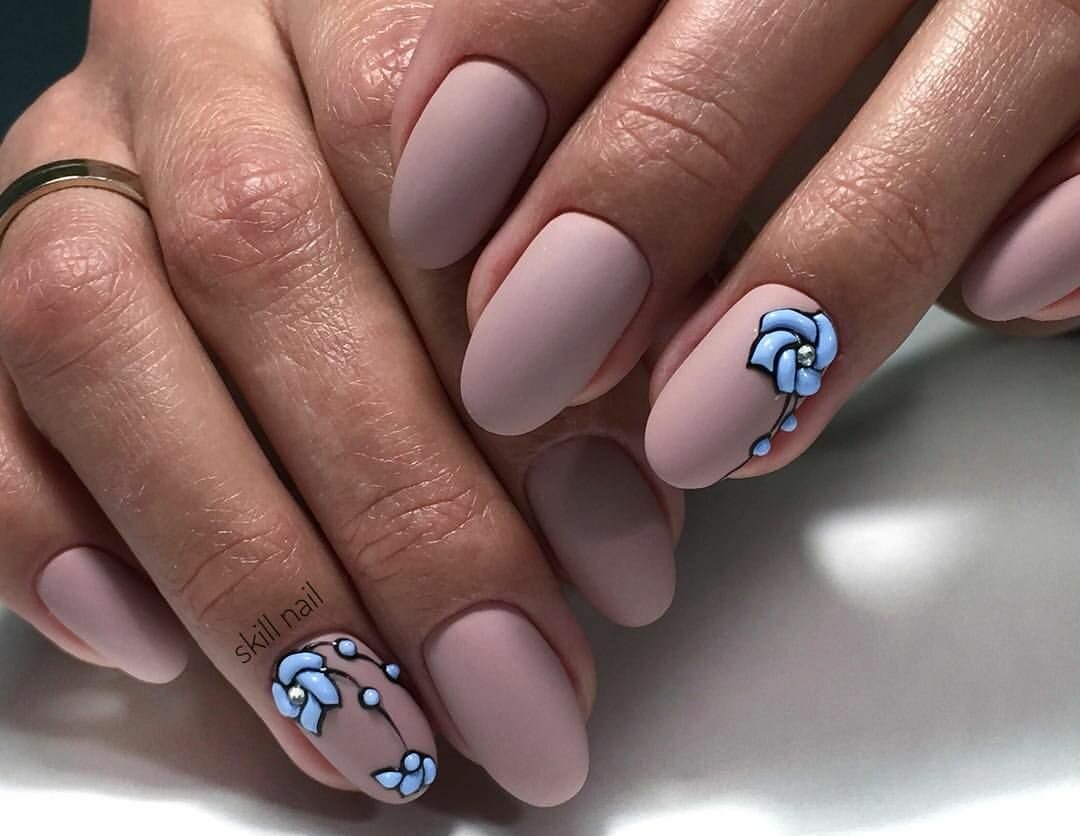 Невероятно красиво подобные гаммы предстают в матовой интерпретации, делая цвет еще более нежным и спокойным. Разнообразить нежно-розовый маникюр с дизайном помогут рисунки и узоры в стиле минимализма: некрупные цветы и листья, полосы, точки.