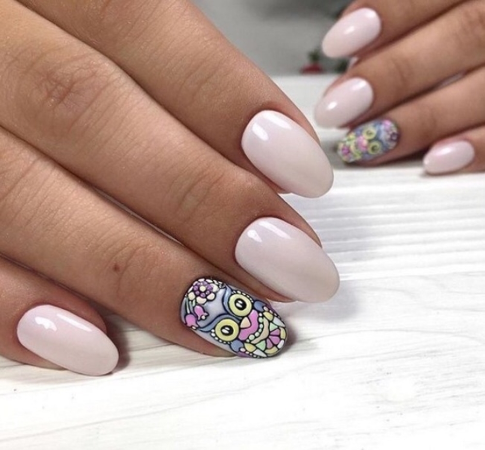 Матовые или глянцевые покрытия выглядят одинаково эффектно на ноготках разной длины и формы. Для декорирования отлично использовать любые украшения. На светлых оттенках идеально смотрится эффект мерцания с использованием блестящей пудры и глиттера.