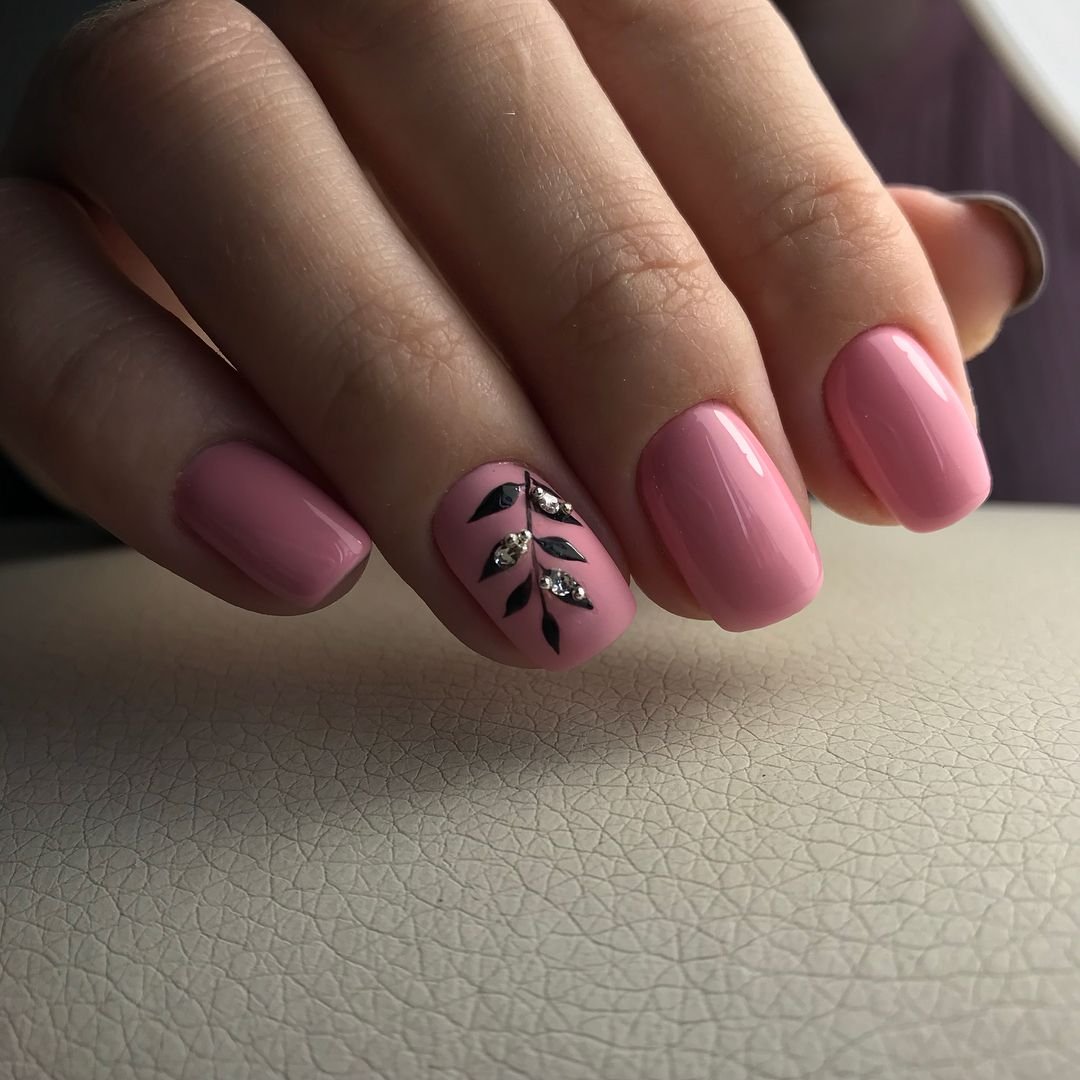 Ниже мы подобрали несколько идей маникюра в розовых тонах с вкраплением черного. Посмотри, насколько эффектно смотрится френч — мы бы не догадались так интересно скомбинировать эти два цвета. Чтобы усилить глубину черного, в некоторых дизайнах можно использовать черный песок или добавить немного серебряного глиттера.