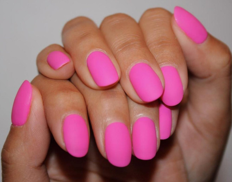 Эффектно смотрится неоновое глянцевое покрытие на длинных ногтях, но модный тренд – практичные короткие ногти в матовом исполнении.