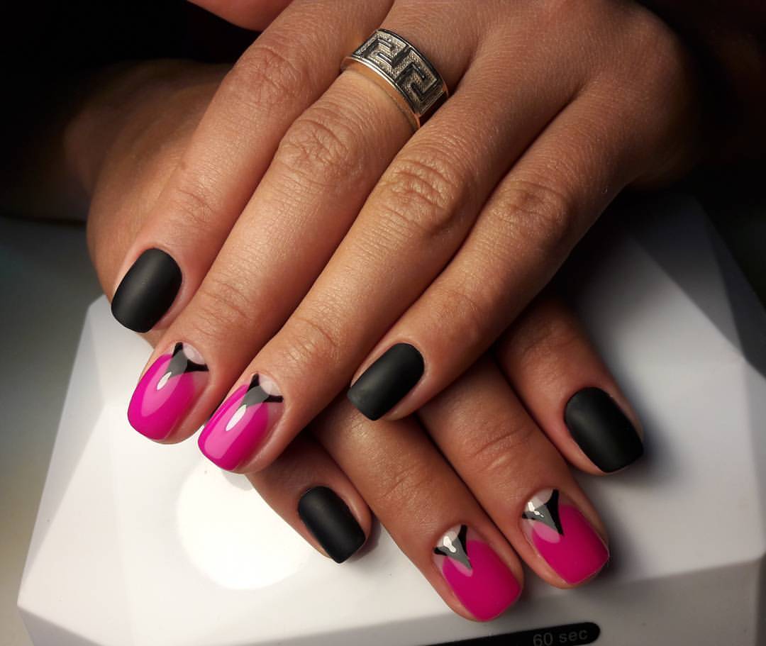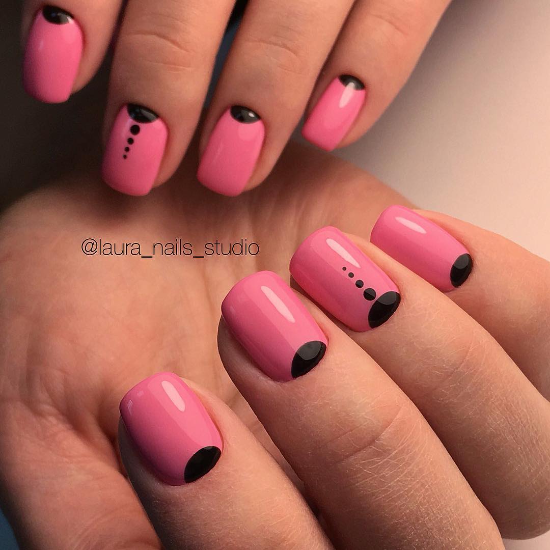 Черно-розовый маникюр на коротких ногтях