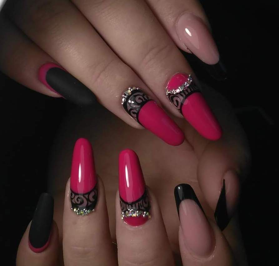 Черно-розовый маникюр: самые популярные идеи на фото