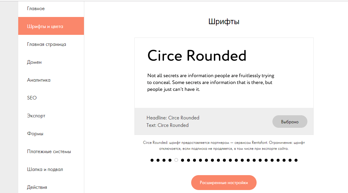 Тильда предлагает несколько пар шрифтов, этого более чем достаточно. Установить шрифт можно в настройках сайта