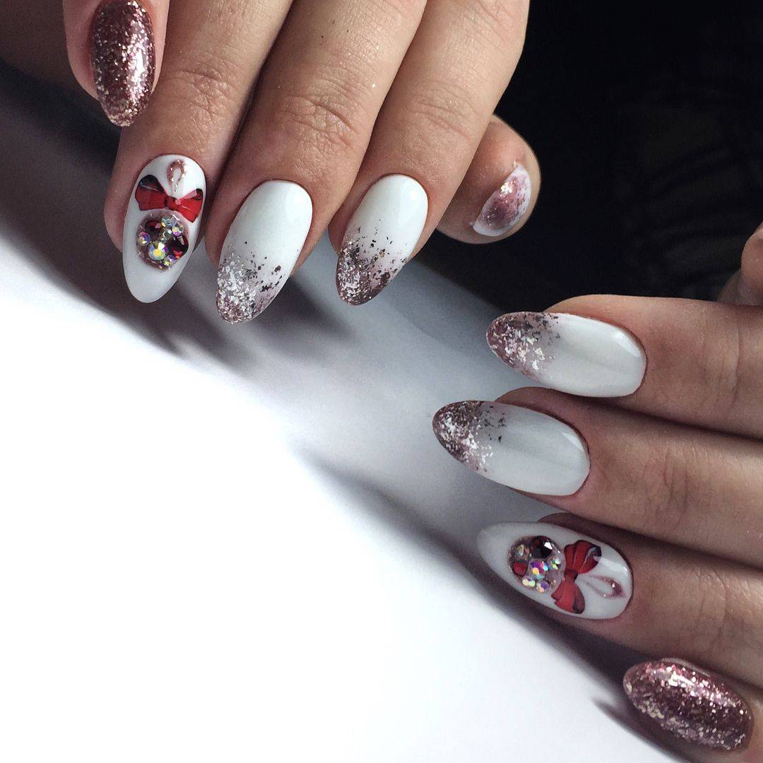 Маникюрный дизайн можно дополнить стразами, блестящими текстурами.
