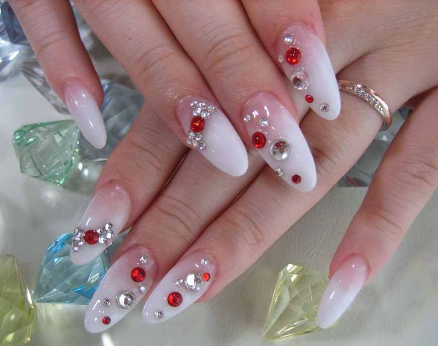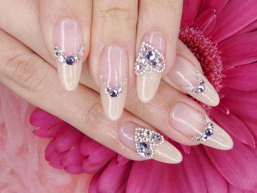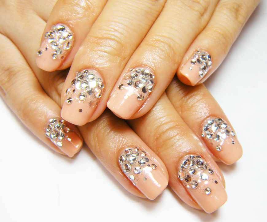 При выборе дизайна необходимо учитывать, что данный способ украшения ногтей осуществляется по-разному, например, с использованием страз той или иной формы, разного их размера или количества.