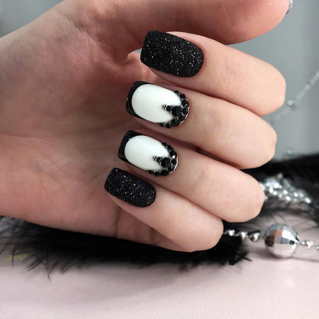 Сегодня на ногтях можно увидеть массу различных вариаций – от классического типа исполнения до более современного. Зачастую такой маникюр имеет дополнительные элементы: узоры, блестки, металлические аппликации, стразы. Вместо белого кончика ногтя, может быть черный или красный.