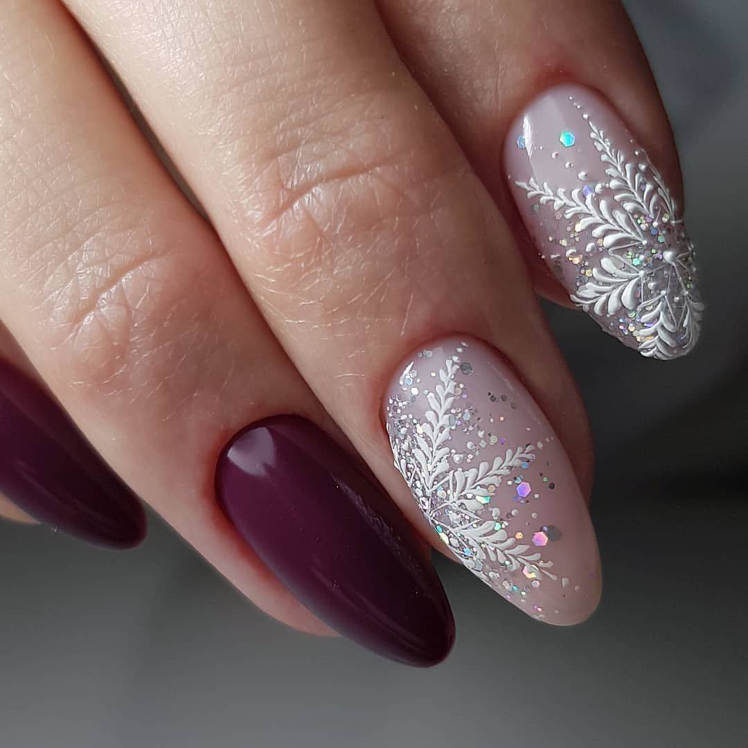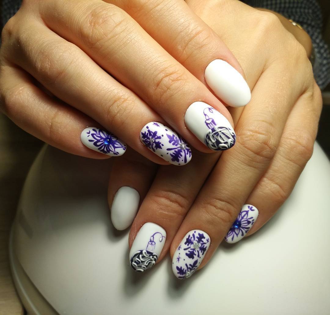 Дизайн маникюра шеллак – обширная тема, которая помимо представленных 5 трендов, включает в себя и другие техники. Среди них новогодние нейл-арты с огромным разнообразием узоров: снежинок, елочек, оленей, многочисленные узоры с кружевом, фольгой и стразами. Предлагаем вам 100 фото-идей стильного маникюра зимы 2020, которые вы можете повторить на своих ноготках.