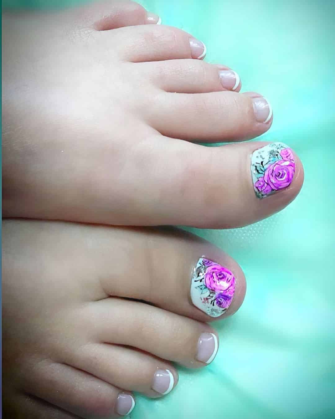 Преимущество шеллака в его обладании широкой палитрой оттенков, а значит, можно придерживаться трендов педикюра и создавать на ноготках цветочные композиции, так модные в этом сезоне.