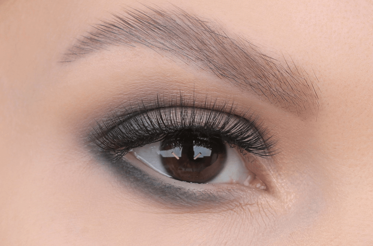 - Более тёмными серыми прокрашивают линию над верхними ресницами и внешний уголок верхнего века.