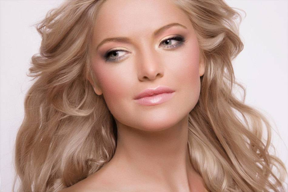 - светлые. Блондинкам нужно сделать акцент, так как платье насыщенного цвета может затмить светлые природные данные. Используйте либо яркую помаду из фиолетово-розовой гаммы, либо выделяйте глаза сиреневыми, серыми или коричневыми тенями;