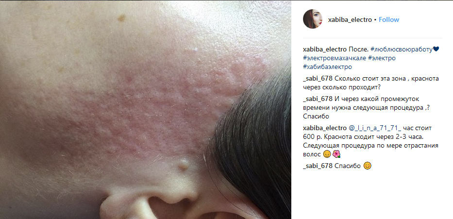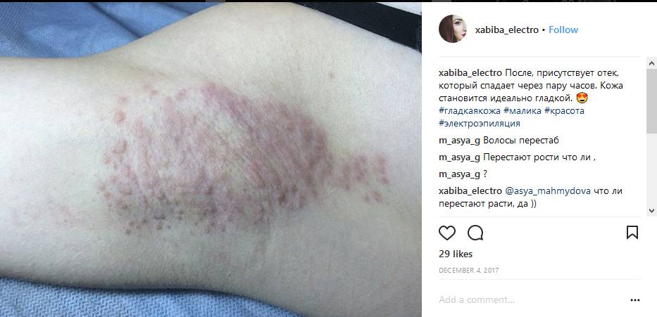 фиксируют отдаленные последствия электроэпиляции в виде точечных депигментированных