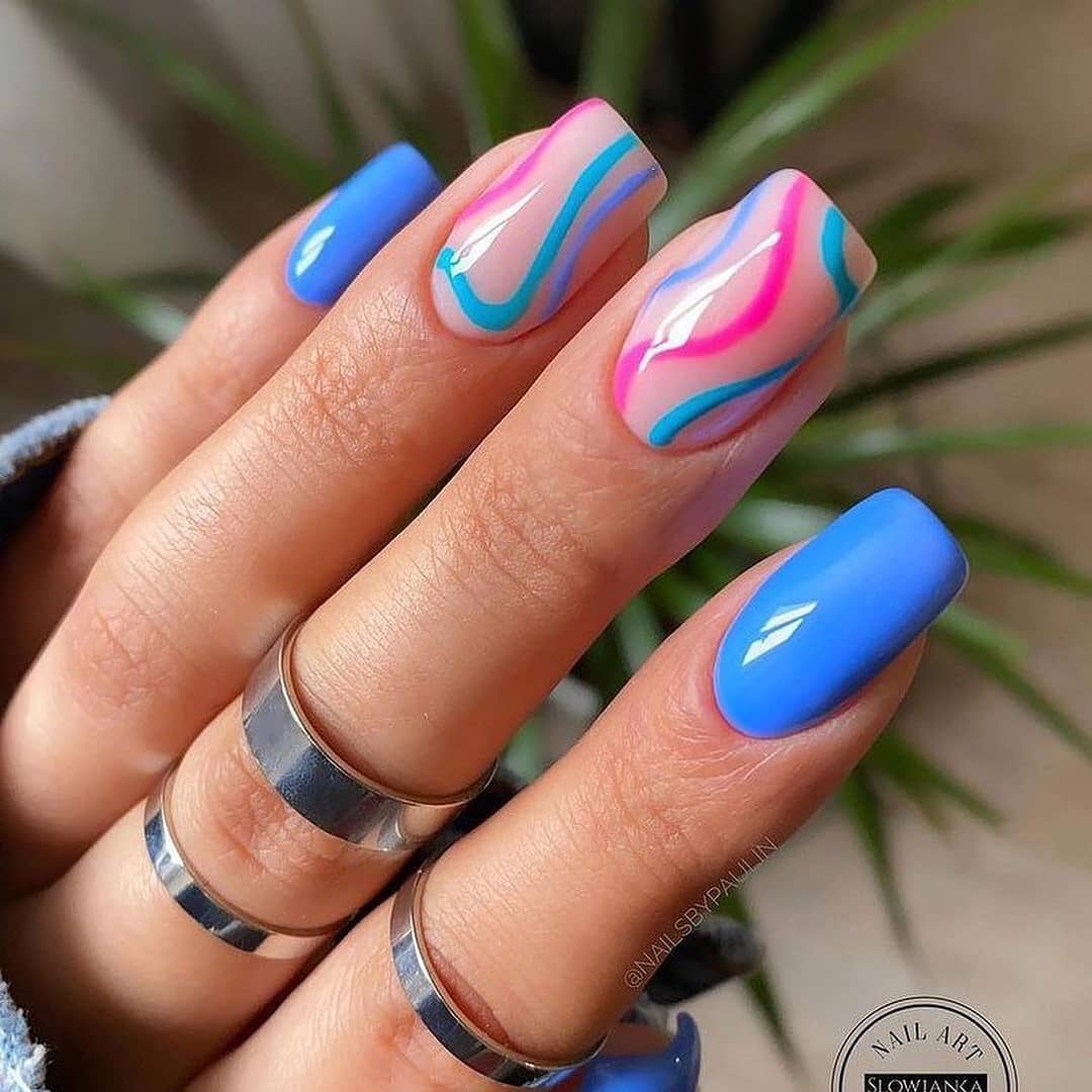 На ногтях также можно рисовать: яркие тона и прикольные картинки позволят в большей мере прочувствовать беззаботное время каникул и насладиться им.