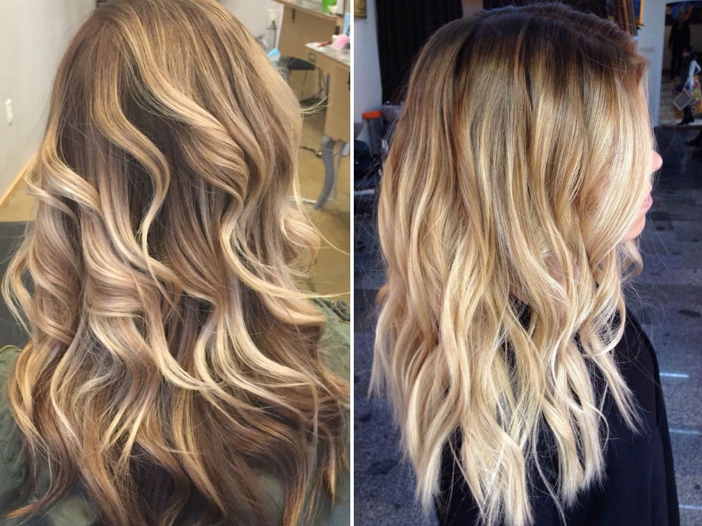 Балаяж оттенками блонда — один из самых распространенных. Он выигрышно выделяет обладательницу, скидывает несколько лет и делает образ современным. Самый распространенный оттенок растяжки — пепельный, но на светлые волосы натуральные блондинки могут использовать любые другие оттенки и их комбинации: золотой, пшеничный, сливочный, жемчужный, холодный бежевый. На русые короткие или на натуральные русые волосы средней длины рекомендуется применять асимметричное колорирование с несколькими оттенками блонда разной теплоты.