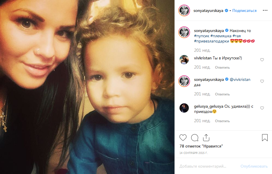Софья Таюрская с племянницей. Фото https://www.instagram.com/sonyatayurskaya/