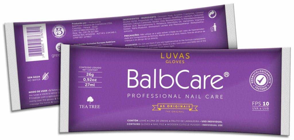 Одноразовый набор для бразильского маникюра. Эмульсия в перчатках включает в состав: экстракт чайного дерева, кальций, кератин и экстракт гамамелиса. Размягчает и насыщает кожу полезными веществами.