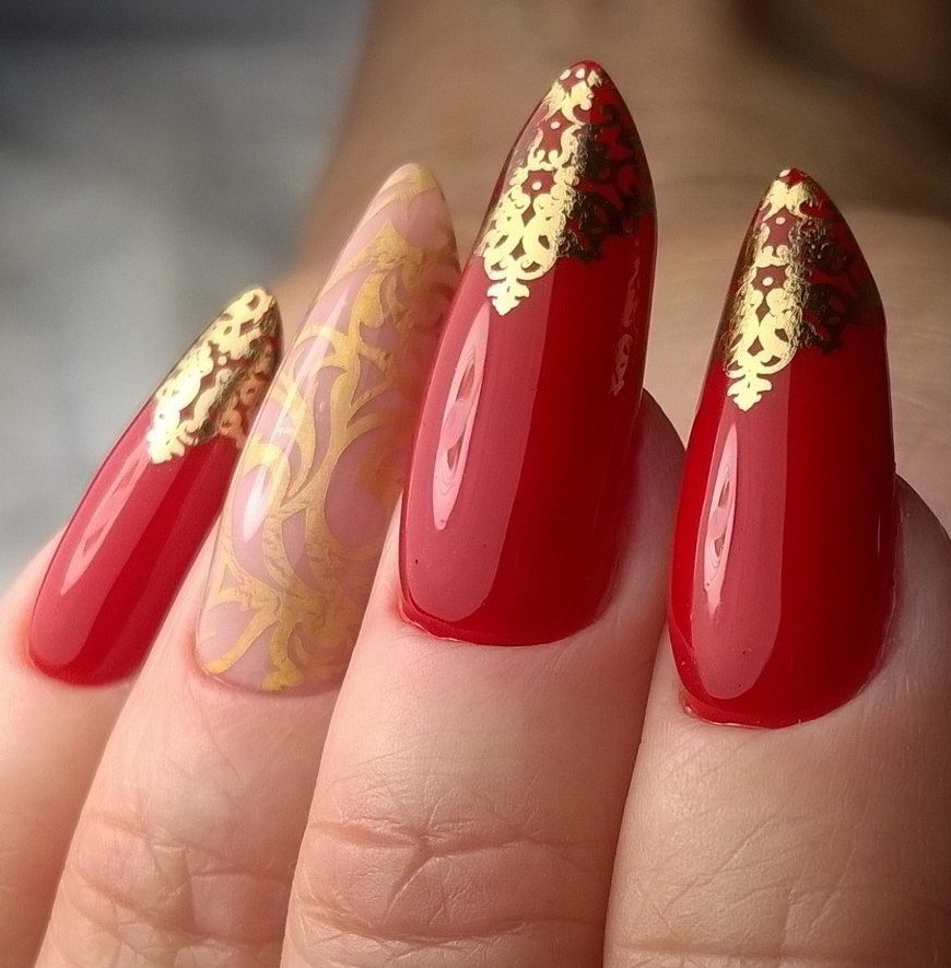 Ногти стилеты золотистый дизайн фото