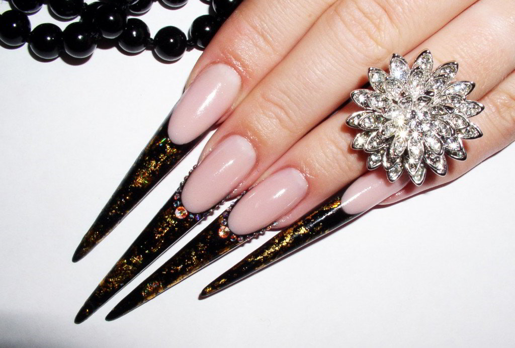 Поскольку стилеты – довольно длинная форма опила, нужно тщательно подходить к выбору материалов для наращивания и оформления ногтей. В поисках более дешёвых услуг можно не только «отделаться» некачественным маникюром (это меньшее из зол), но и получить серьёзные заболевания ногтевых пластин и впоследствии долго их лечить.