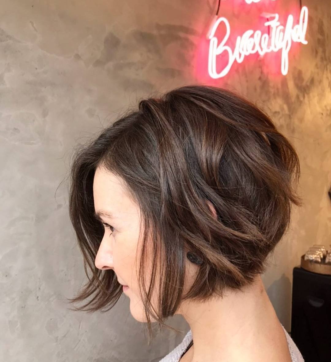 Если у женщины полное лицо, то самой хорошей идеей будет сделать стрижку каскад, которая поможет спрофилировать лицо. Это идеальный метод, как визуально сделать его меньше, чем оно есть на самом деле. Чтобы пропорции лица стали еще более идеальными, мастер часто подбирает градуировку или филировку. Но опять-таки — это будет зависеть от типа волос.