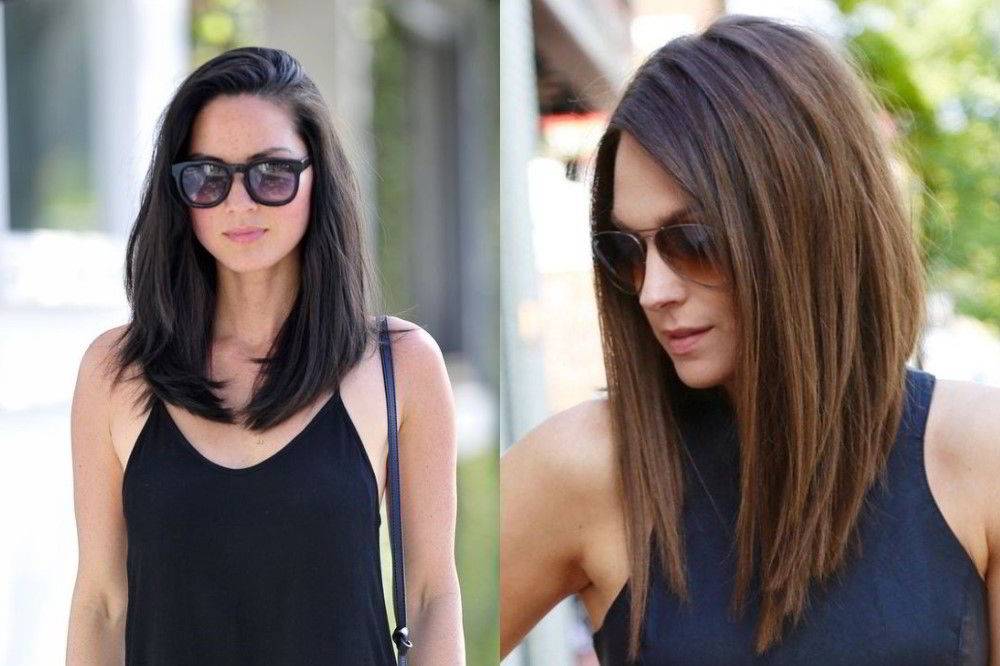 Длина может быть как средней (до плеч), так и гораздо ниже. Представительницы прекрасного пола, наделенные густой роскошной шевелюрой темного оттенка, могут позволить себе ровную прямую челку, подчеркнув тем самым богатство, данное природой.