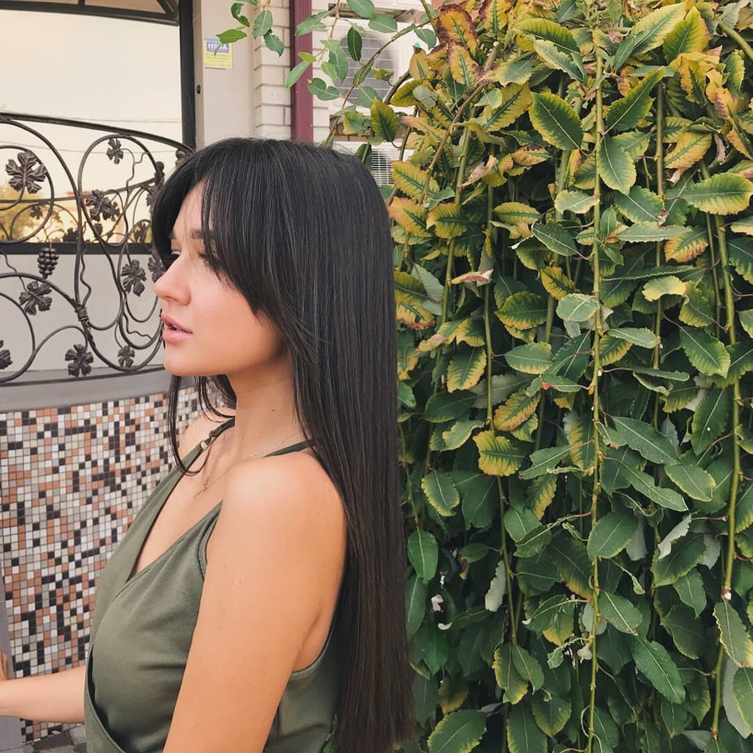 Круглая челка на длинных прямых волосах