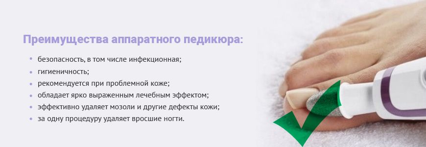 Аппаратный педикюр – процедура ухода за ногами, в ходе которой используется специальный аппарат.Преимущества: