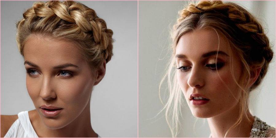 Можно выполнить прямой пробор. С одной его стороны плетут косу и выкладывают в виде ободка. Аналогично можно сформировать пучок с другой стороны. Подробное описание создания поможет в создании стильного варианта собственными силами.