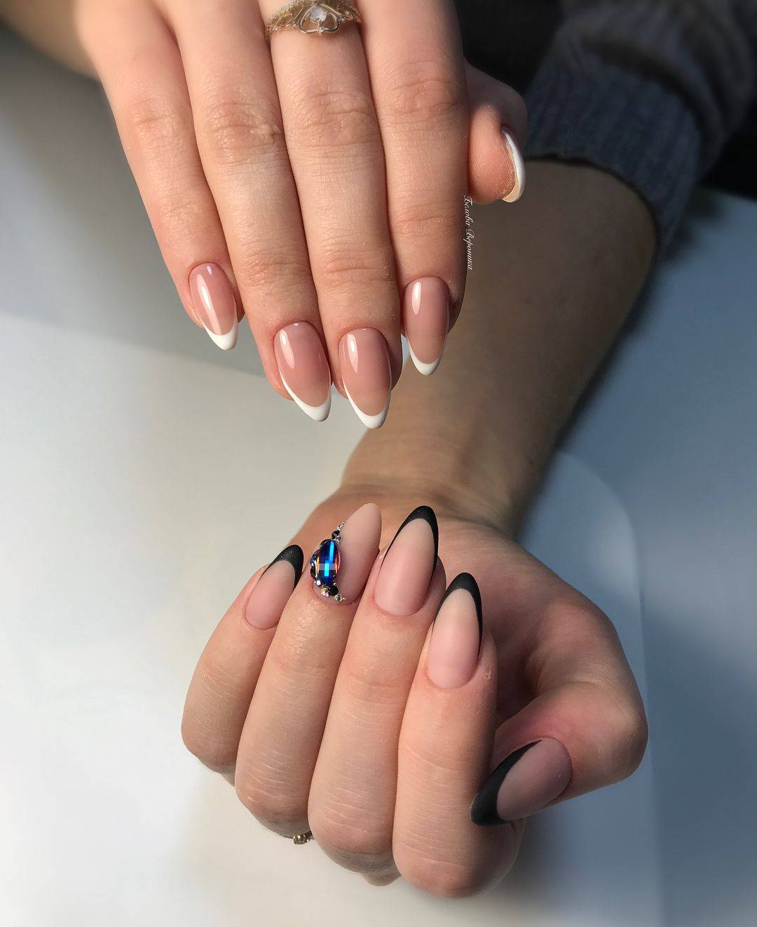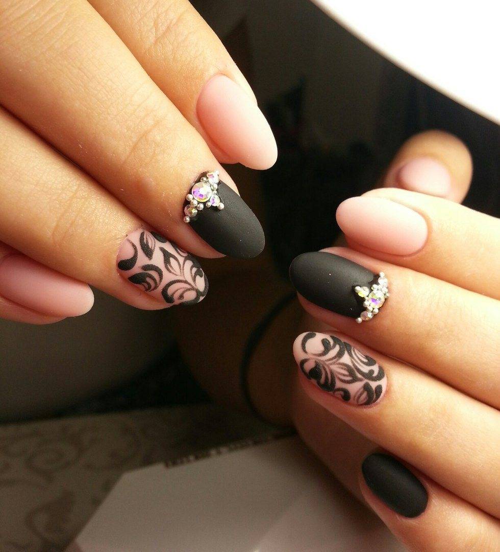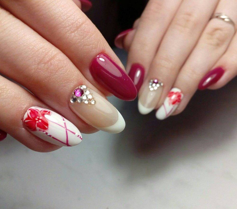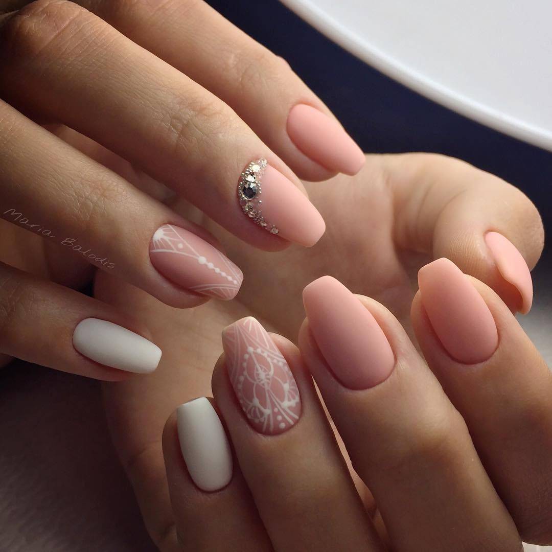 Обычно он дополняется кружевными узорами, флористическими мотивами, художественной росписью, стразами. Такой вариант всегда популярен, так как отличается скромностью и изяществом. Такой маникюр идеально подходит для длинных и средних ногтей. Классические оттенки – полупрозрачный розовый, бежевый, молочный, нюдовый.