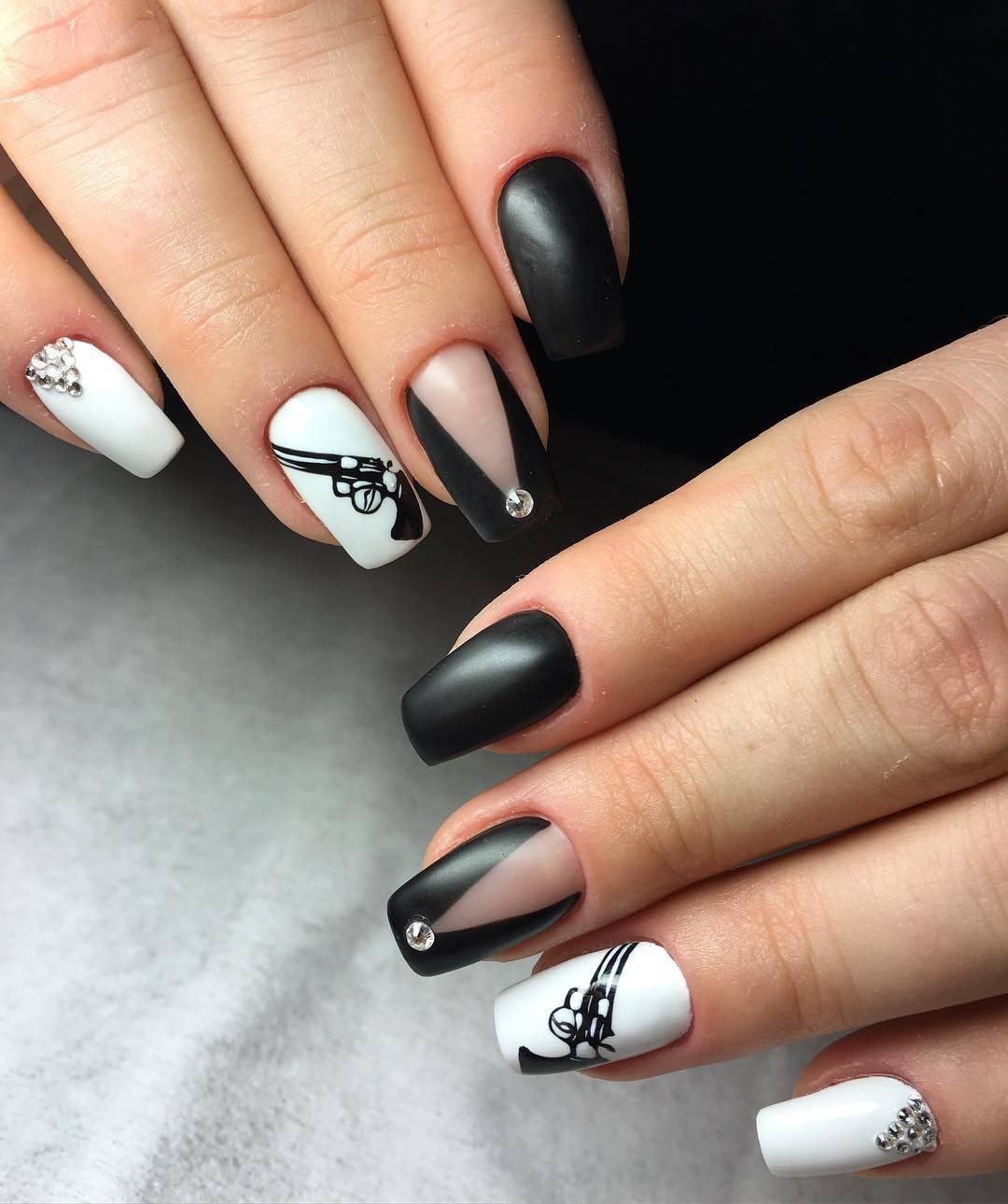 - Для повседневных дел подойдет дизайн в сочетании с белым цветом. С таким маникюром вы не прогадаете.