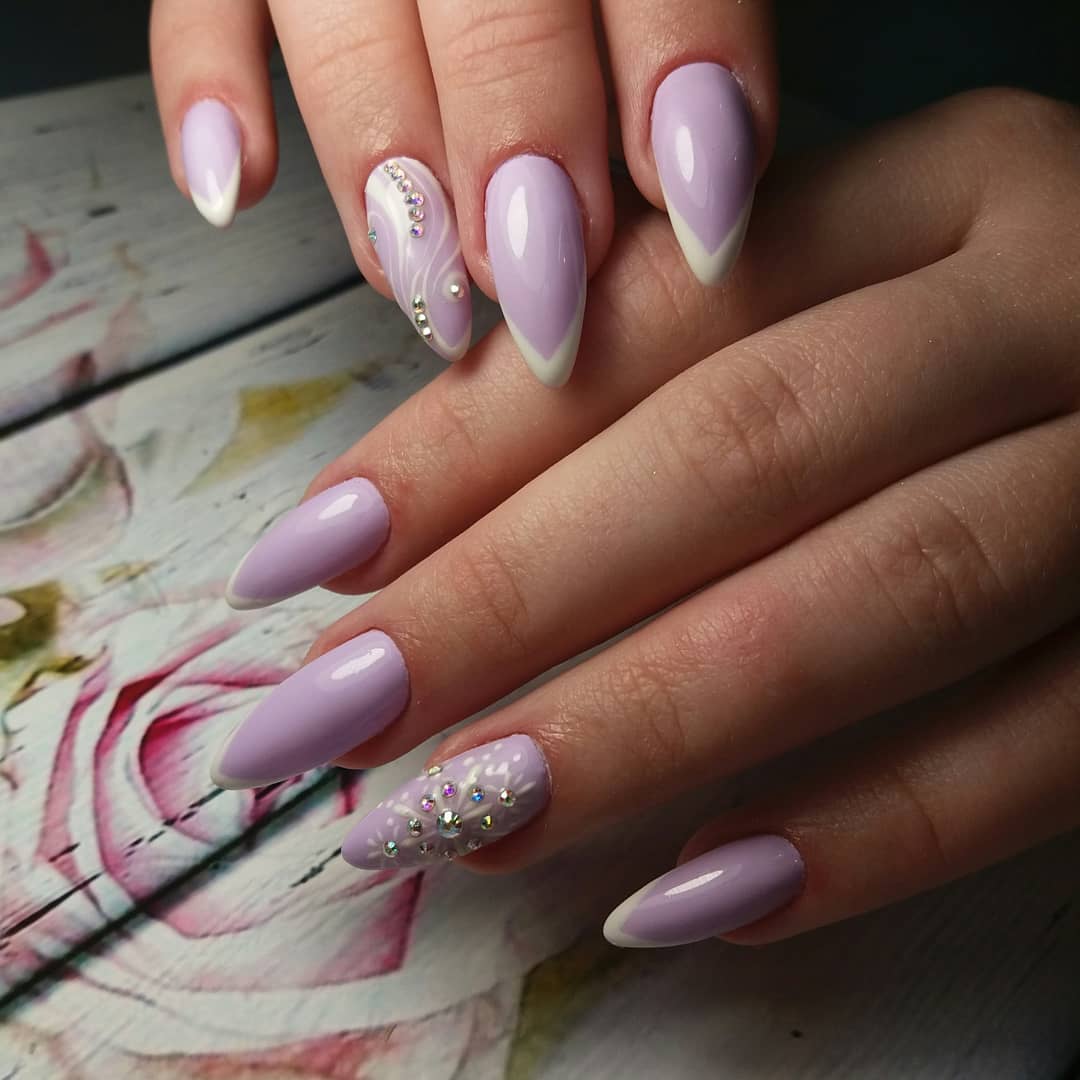 Инкрустация выполняется на 1 акцентном ноготке. Если ногти короткие, то для декора можно выбрать большой палец. На средних и длинных ногтях миндалевидной формы инкрустация выглядит особенно эффектно и привлекательно. Здесь для декора выбирайте безымянный палец, так как он используется реже других, при этом постоянно на виду.