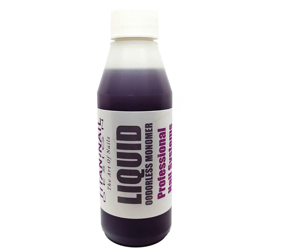 Жидкость, начинающая реакцию затвердения при смешивании с акриловой пудрой, обеспечивающая простое и легкое нанесение акрила, не вызывающая изменения цвета акрила (содержит ингибиторы ультрафиолета). Содержит пластификаторы для дополнительной прочности, долговечности и пластичности. Прекрасно подходит для работы с цветными акриловыми пудрами.