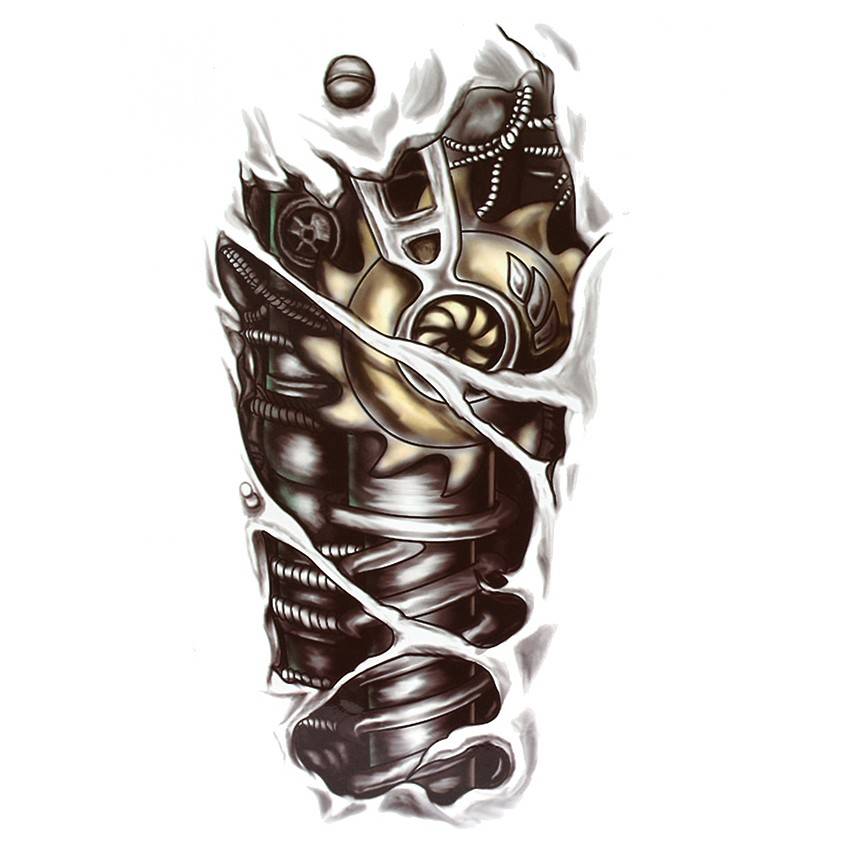 Механика, нанесенная на руке, в виде рукава, является самым популярным дизайном мужских татуировок. При таком исполнении, механизмы, виднеющиеся сквозь повреждения и разрывы кожи, напоминают части робота, подобные Терминатору. В основном, рукава набивают люди, независимые от мнения окружающих людей, имеющие волевой характер.