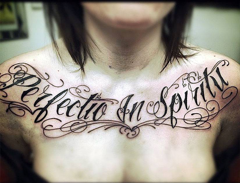 Что касается прекрасной половины человечества, здесь кардинально противоположная ситуация. Тату в стиле чикано для девушек отличаются легкостью, ведь на изображениях часто появляются надписи, причем шрифт для тату имеет много тонких линий.