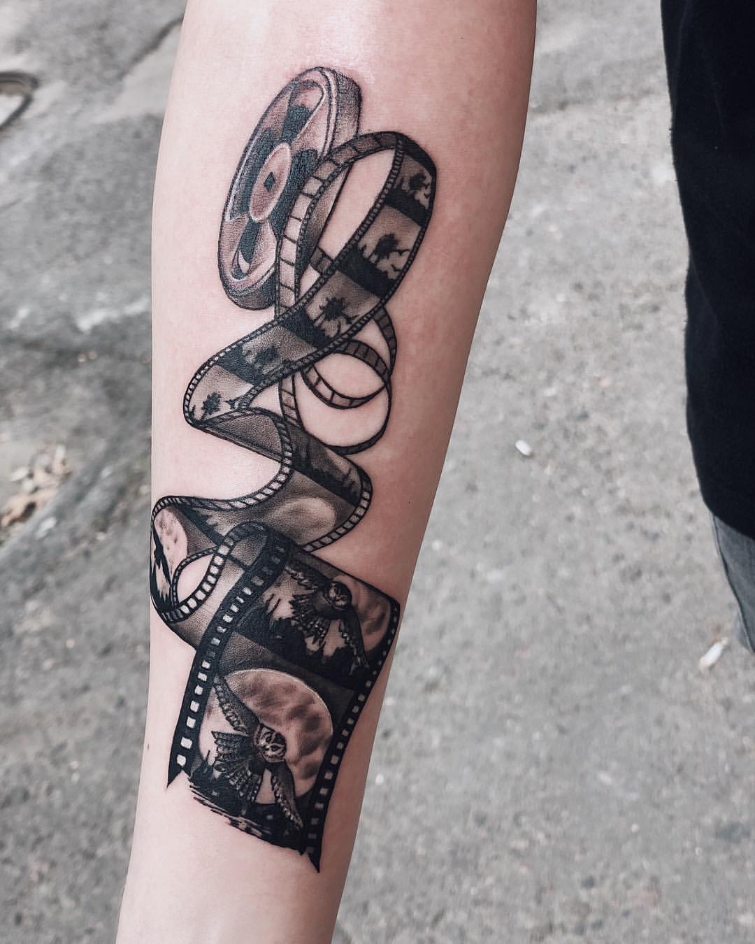 Кинематограф – второе направление после литературы, где широко представлена описываемая стилистика. Популярные фильмы подарили миру множество героев, которые нашли свое место в виде фэнтези тату на телах фанатов-киноманов. Дракон Смауг, эльфы, хоббиты, Голум и другие известные персонажи вселенной Властелина колец являются источником вдохновения для любителей наколок и мастеров татуировщиков. Не меньшим спросом пользуются эскизы и из других фильмов, например, Гарри Поттер или Хроники Нарнии.