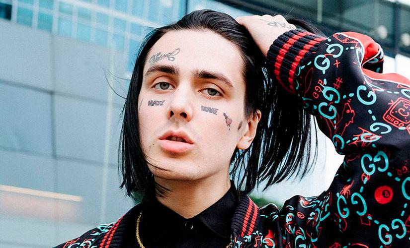 Лил Пип — американский рэпер и модель, основатель стиля “эмо-рэп”. На лице — надписи, миниатюрные изображения звезды и разбитого сердца.