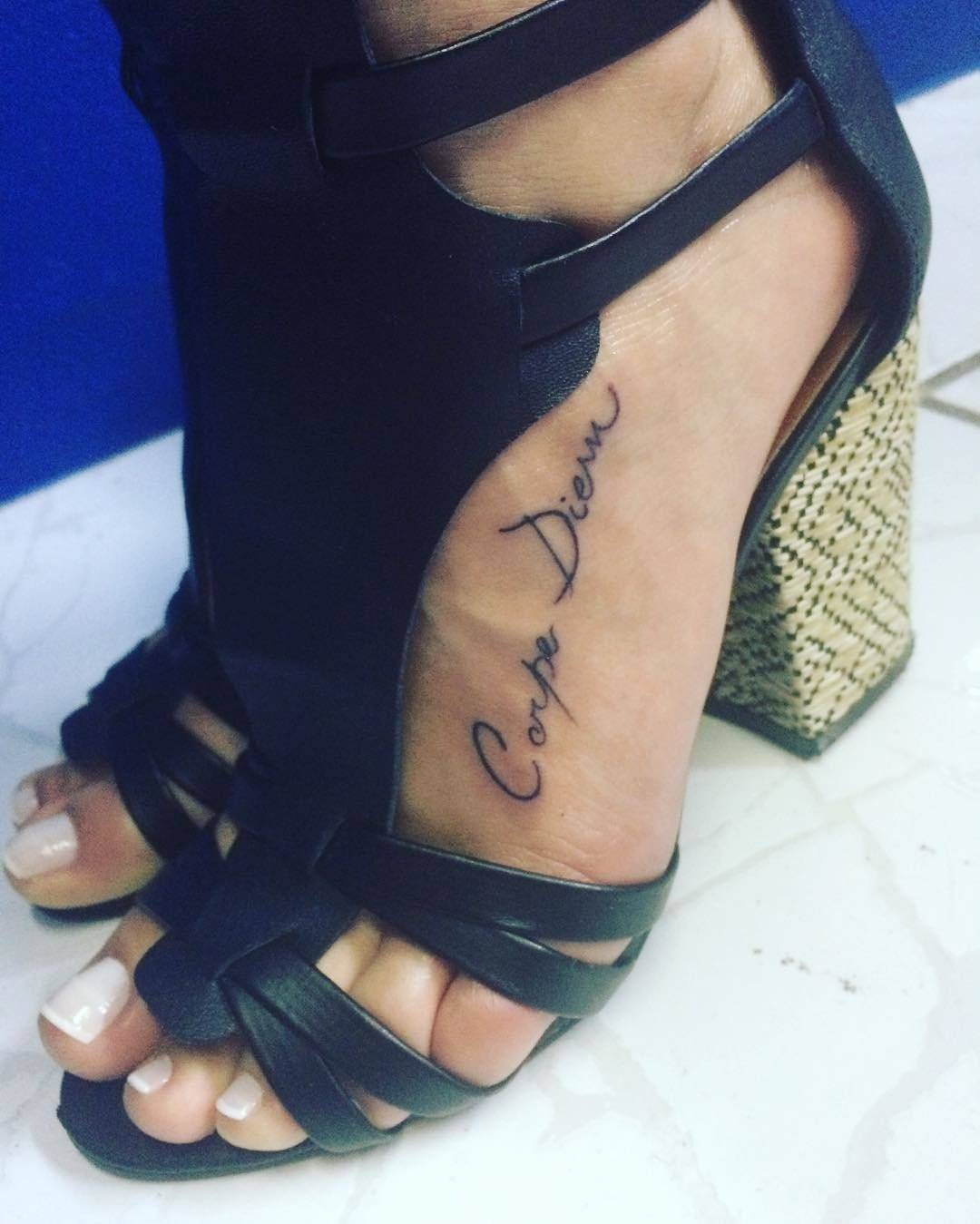 На ноге тоже можно написать что угодно. Тонкая надпись вокруг лодыжки? Размашистая на бедре? На ноге имеется хорошая свобода выбора.