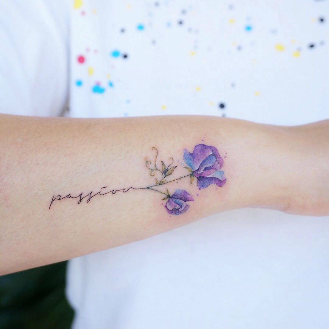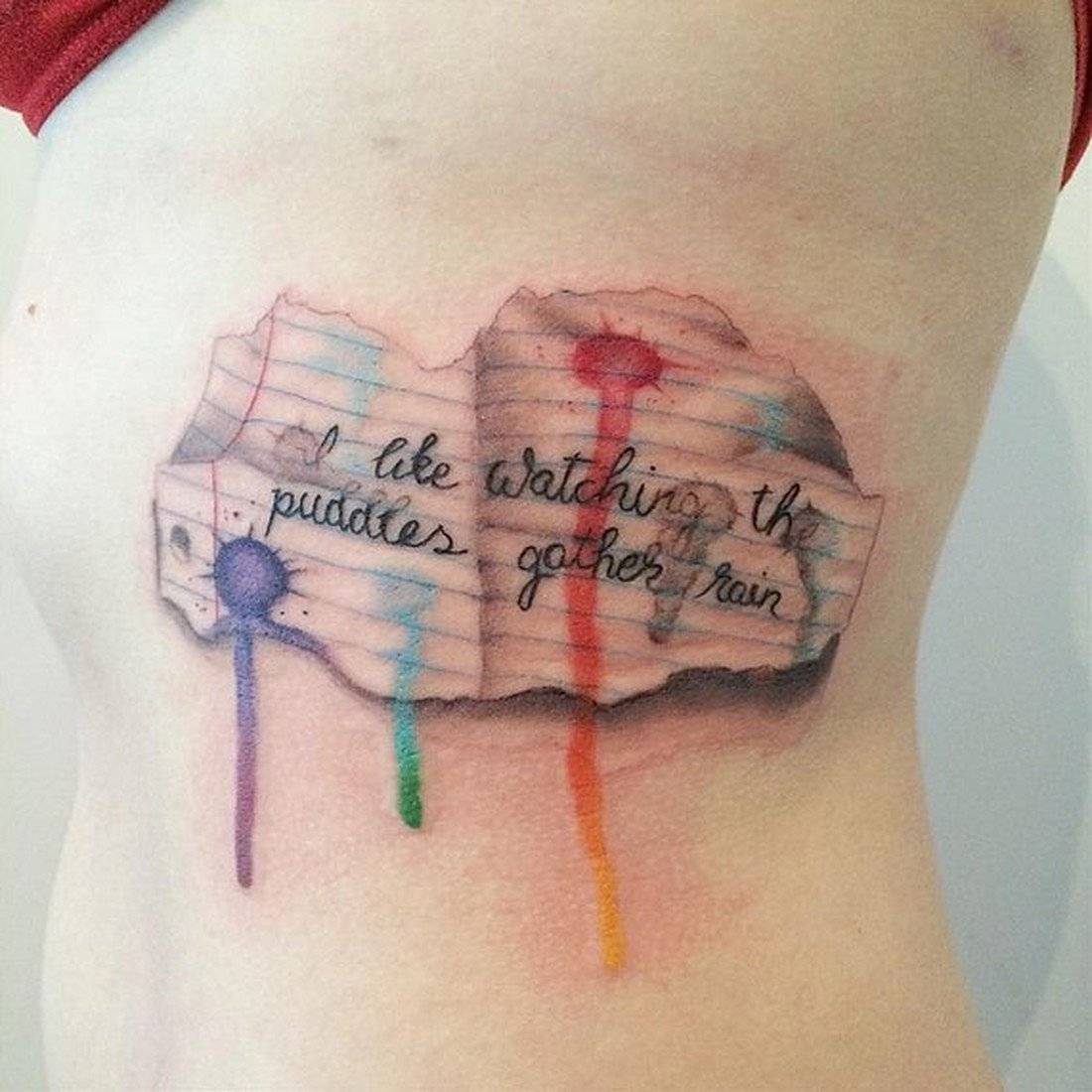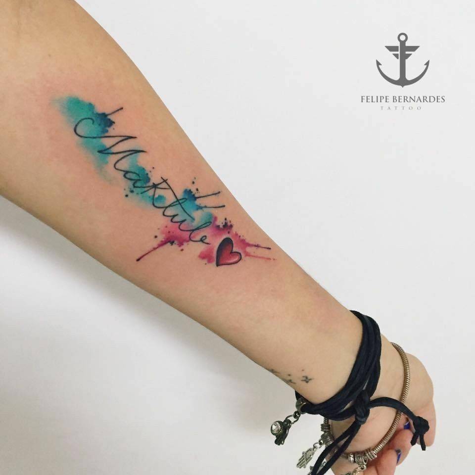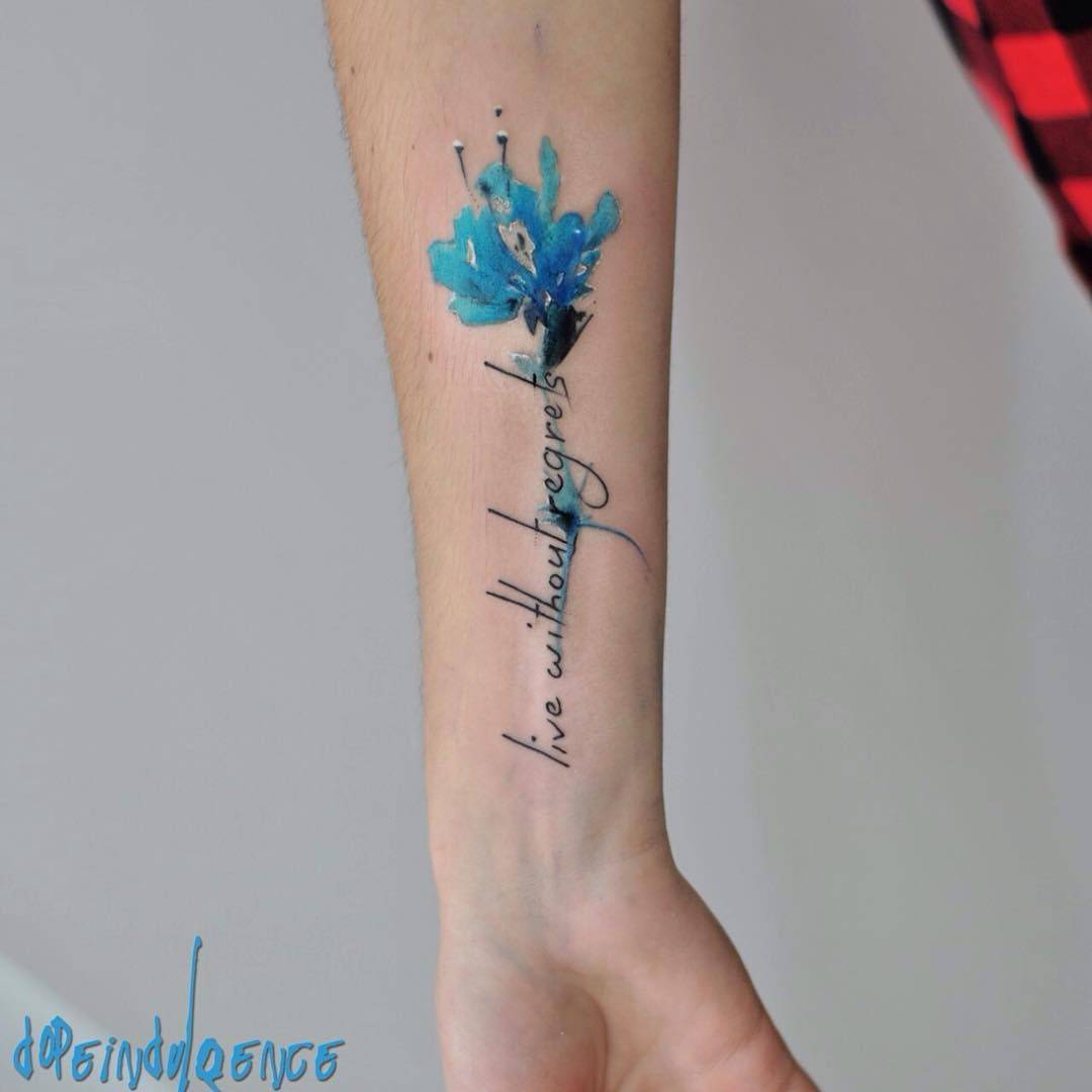В надписи для тату можно добавлять яркие краски: это сделает их еще более модными, а также вдохнет жизнь в простые иероглифы.