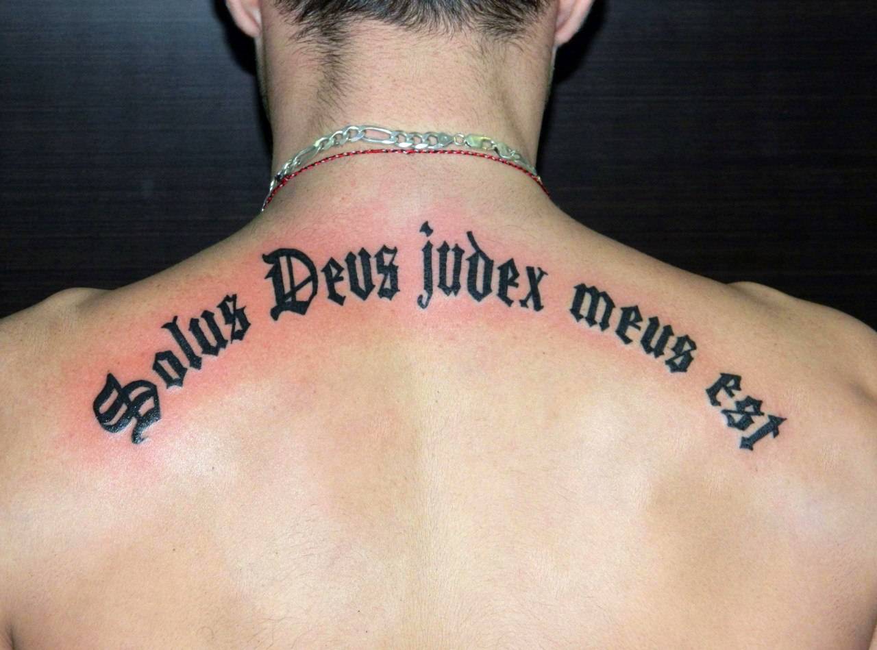 Часто выбирают нанесение изображения на спине, но тут всё немного неоднозначно. Если изобразить надписи просто на спине, то тогда они при движении будут изгибаться, искажаться, не очень хорошо читаться. А вот если предпочесть иметь аккуратное тату на лопатке, то тогда будет всё смотреться более чем прекрасно.