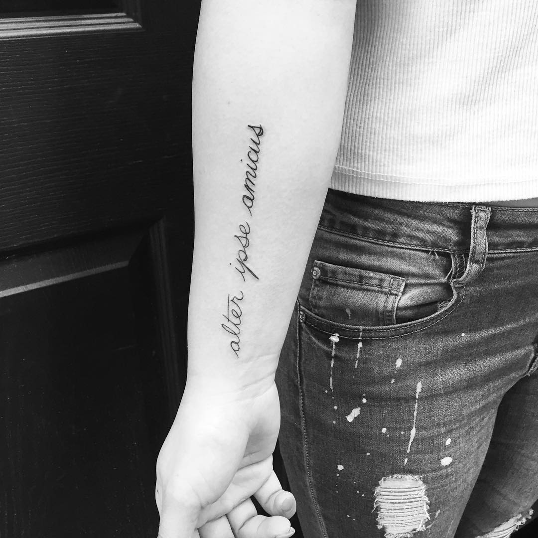 Тату надпись на латыни на руке