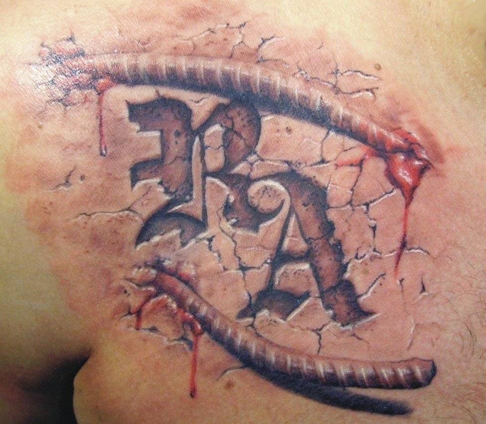 Мужчины, желающие выглядеть брутально, размещают крупные надписи на больших участках тела и на руках. Иногда тату используются для маскировки шрамов.