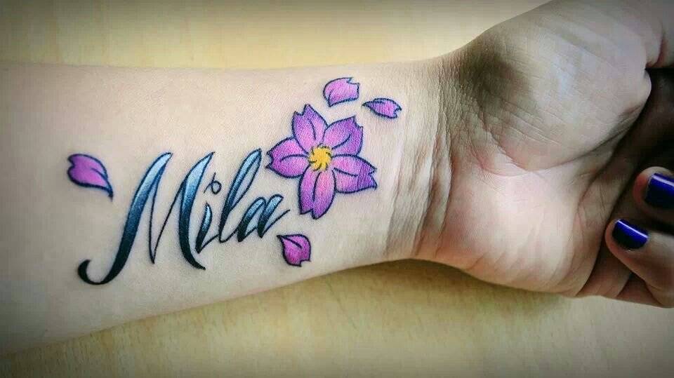 Цветочные мотивы – распространенный элемент татуировок, который очень удачно сочетается с именами. Такое тату подходит как девушкам, так и мужчинам в зависимости от выбранного цветка. Например, фиалка, сакура, подснежник или нарцисс больше подходят девушкам, а вот роза будет удачно смотреться на мужском теле в сочетании с именем.