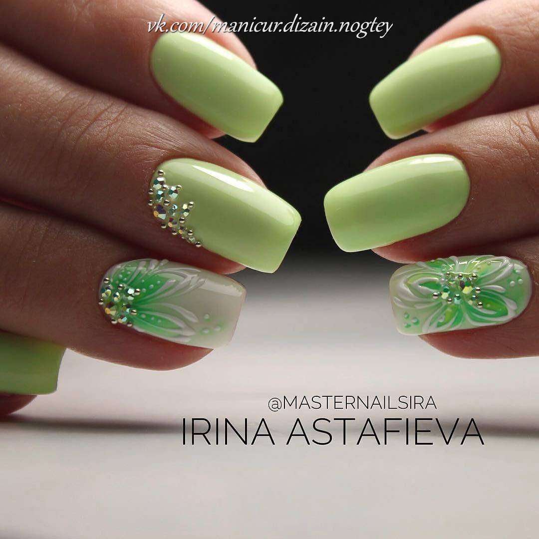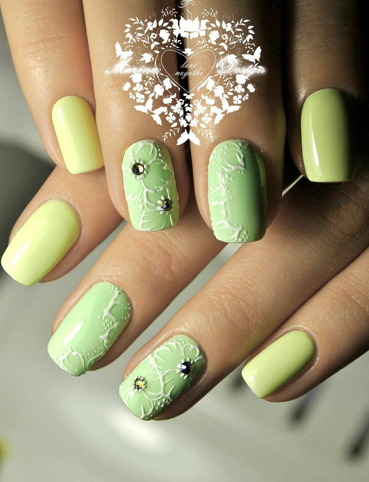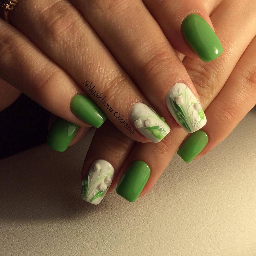 Идей для зеленого маникюра огромное количество: можно красиво сочетать зеленый с другими цветами, можно использовать разнообразные элементы декора зеленых оттенков: стразы, бульонки, пайетки, камифубуки, сухие и жидкие блестки, фольгу. Зеленый может быть «кошачьим глазом», может быть с эффектом 3D или с изысканным мраморным дизайном. Можно блестящий зеленый гель-лак частично или полностью сделать матовым или смешать в технике «градиент» с другими цветами. Вполне возможно, Ваш нейл-мастер или Вы сами придумаете уникальный авторский дизайн зеленого маникюра. Вдохновляйтесь живительным зеленым, смело экспериментируйте и воплощайте в жизнь свои креативные идеи! Главное, чтобы это было красиво, эстетично и со вкусом, приносило огромное удовольствие автору и «носителю» маникюра и служило живительным источником для новых творческих идей зеленого маникюра и зеленого дизайна.
