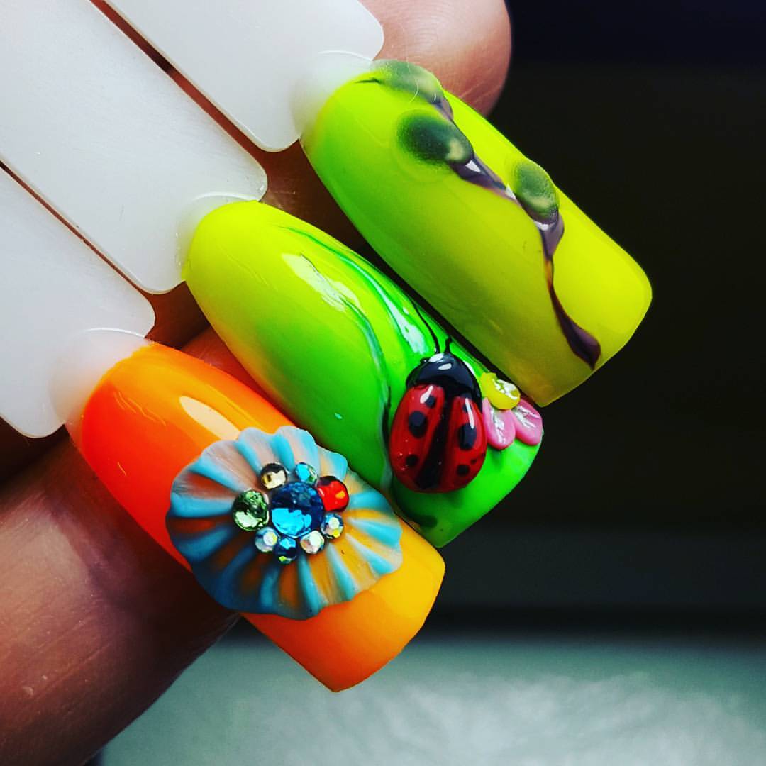 Только стоит учитывать, что такая пестрота рисунка лучше всего смотрится в роли акцента – на одном или нескольких ногтях, но не на всех сразу.