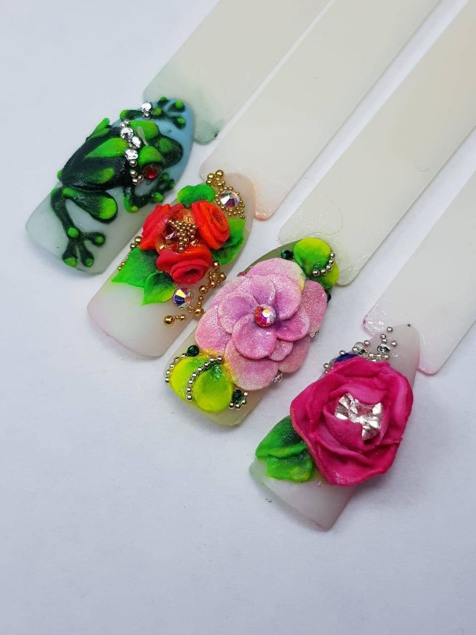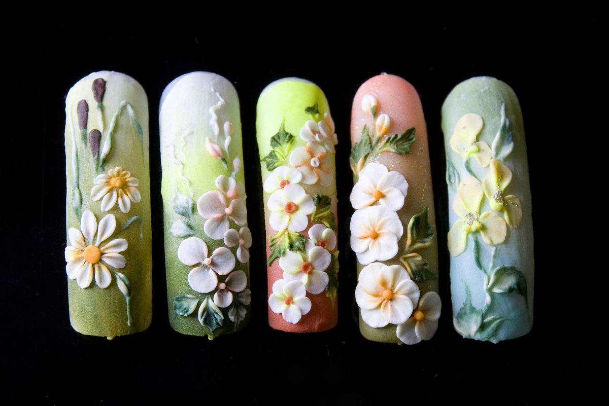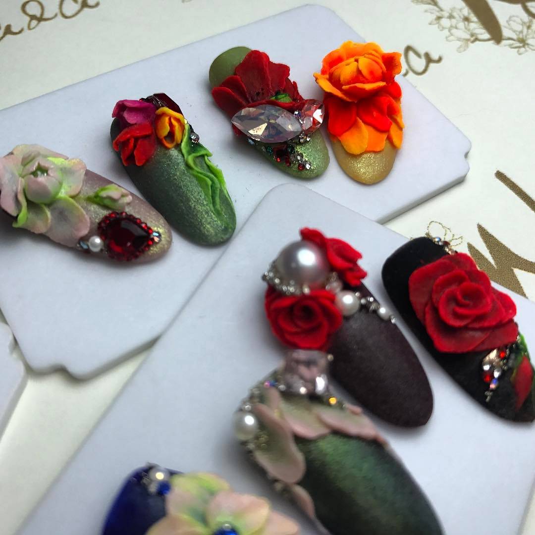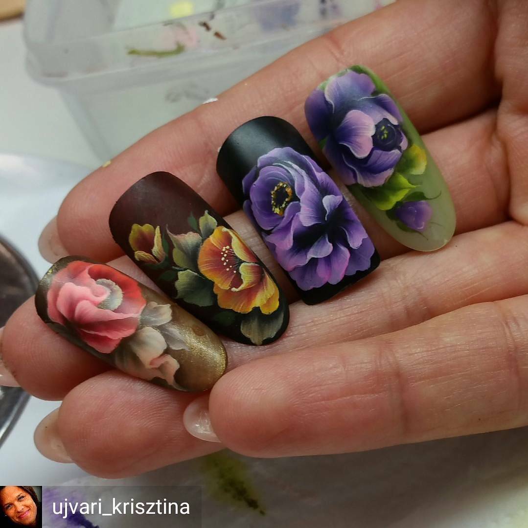 Используйте для дизайна крупные цветы, например, лилии, розы, орхидеи. Дополните маникюр каплями прозрачного топа, имитирующие росу или капли дождя
