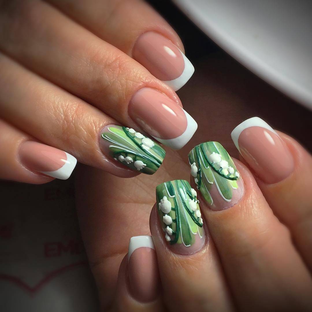 Модницам предлагаются самые разные новинки в области нанесения французского маникюра: миллениум-френч, фан-френч, диагональный (косой) френч с использованием всех оттенков зелени в тандеме с различным декором и художественной росписью. Среди распространенных рисунков превалируют растительные и фруктовые мотивы, звериные принты, геометрия, абстракция.