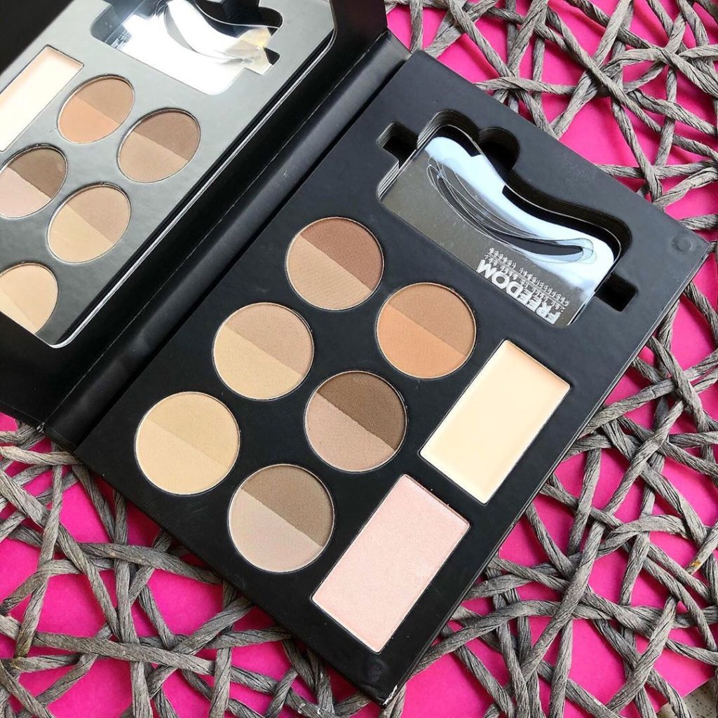 Комбинируя оттенки, представленные в палитре, можно создавать оттенок для светлых или темных волос. Кисточка с косым срезом позволяет распределить косметику, прорисовать пробелы между волосками, сделать четкий контур. Тон можно сделать интенсивнее либо менее заметным. По отзывам, косметика отличается хорошей пигментацией и насыщенным оттенком.