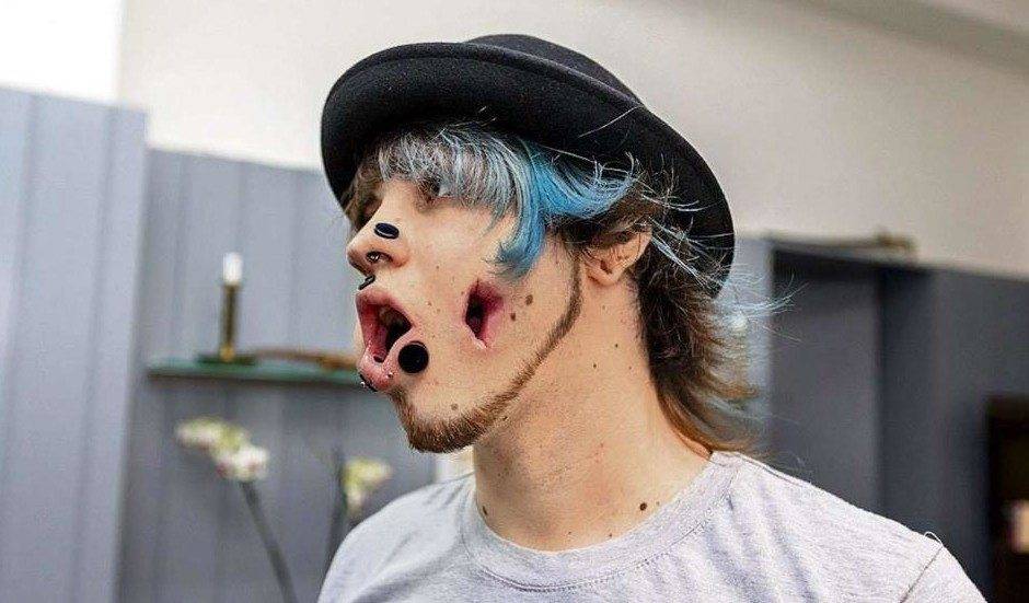 Парень сделал себе огромные дырки на лице